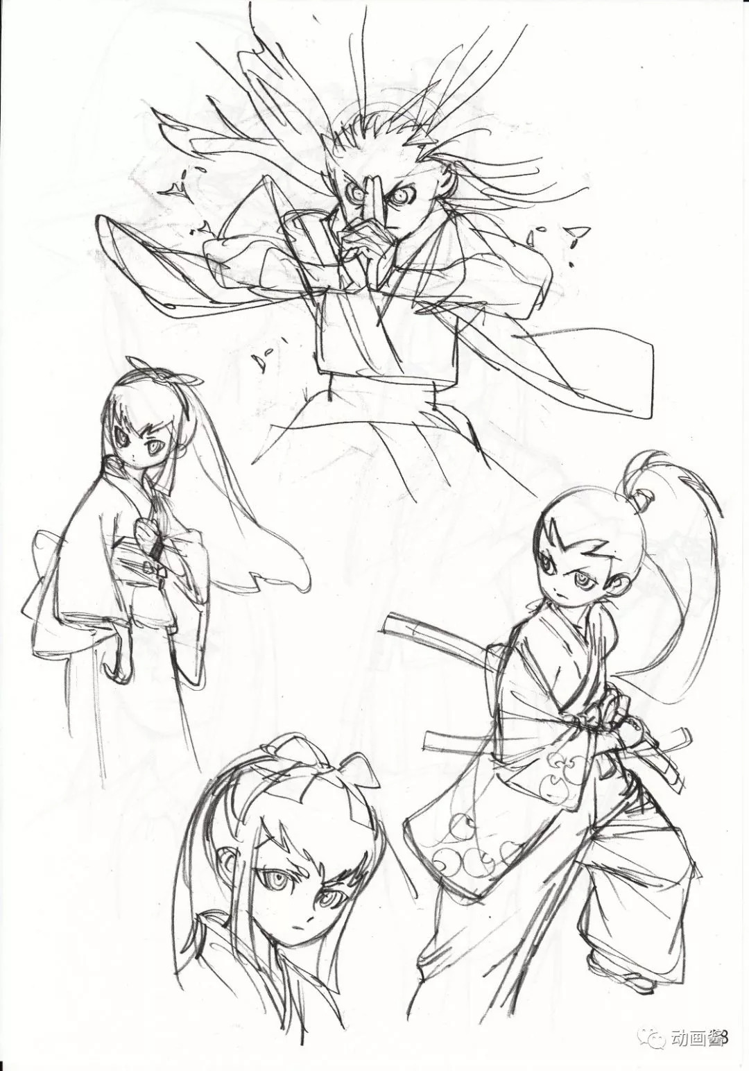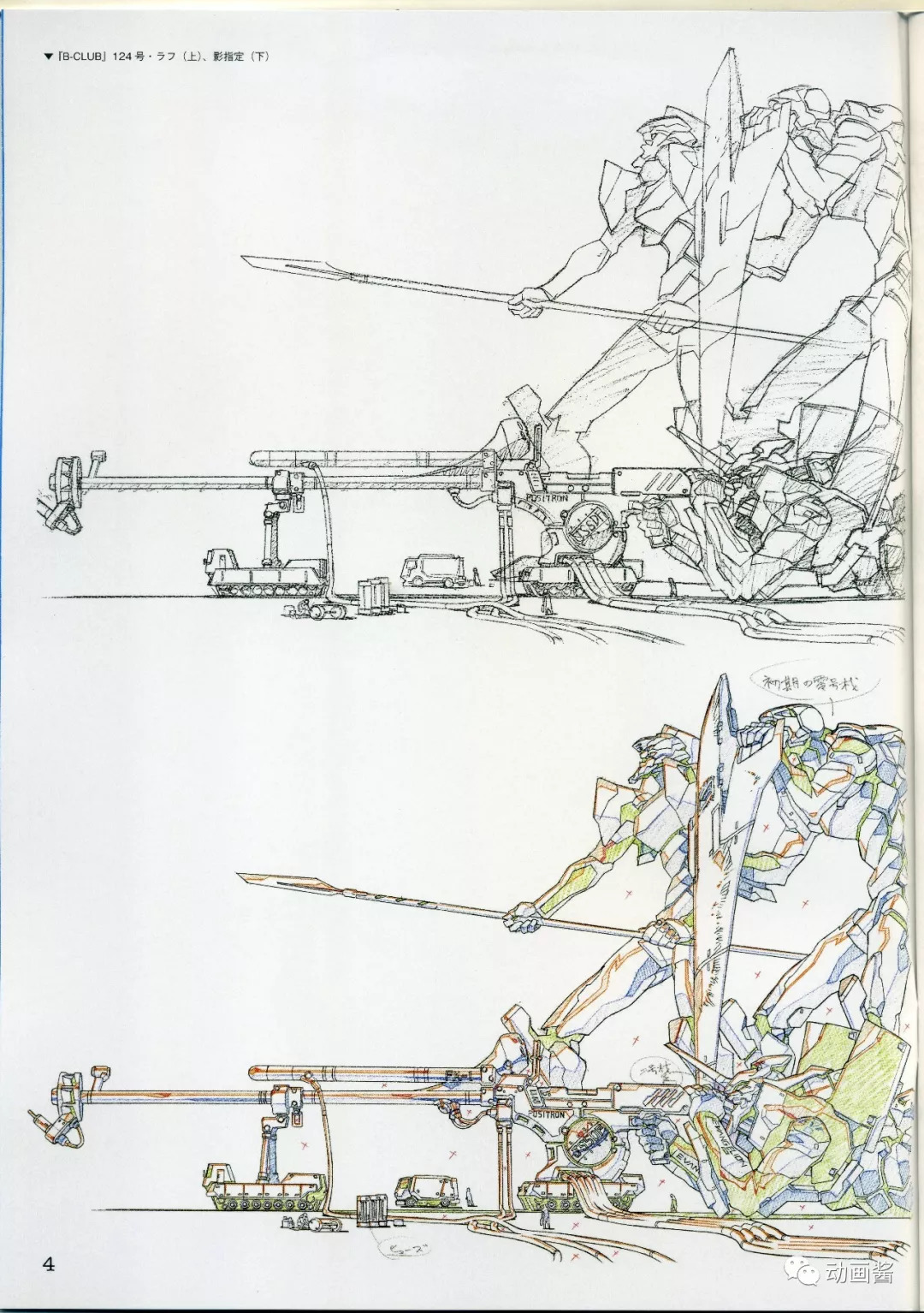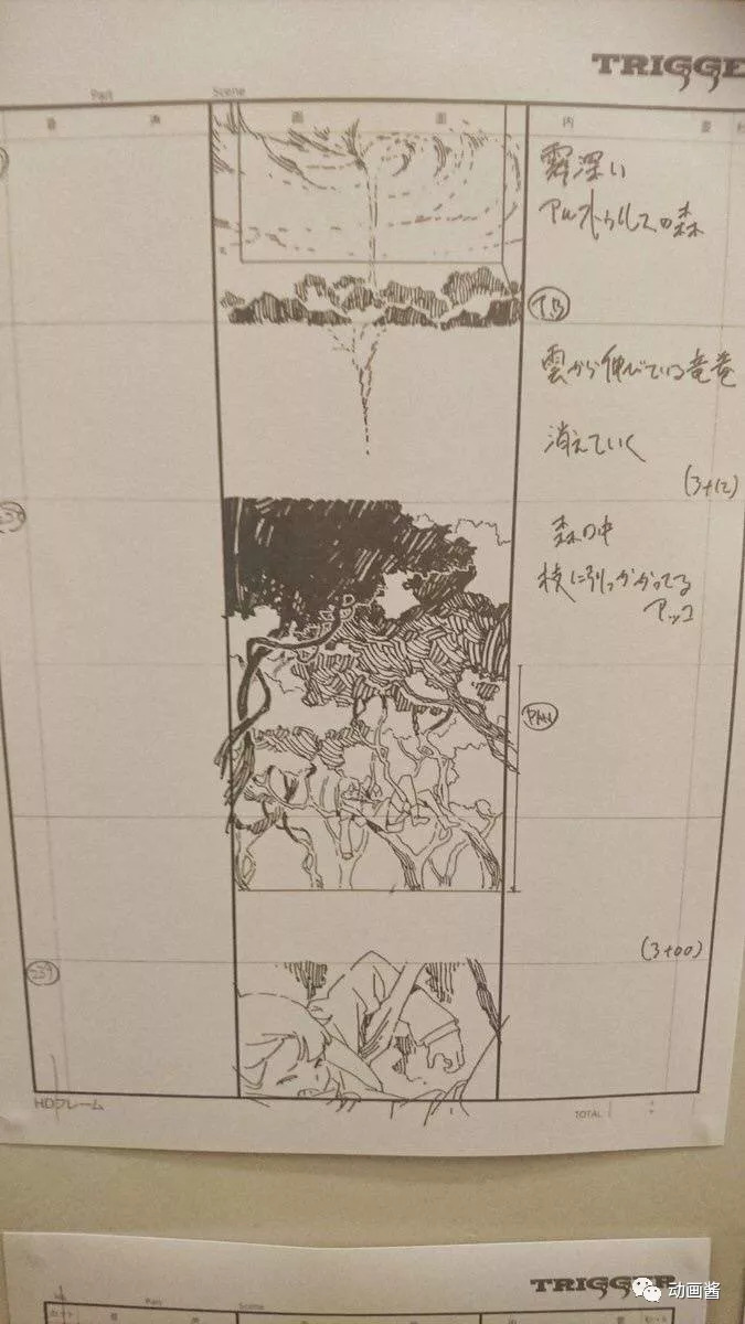 新人原画师们根据监督的分镜和设定图,画出构图(layout)。吉成监督会根据每个人所画内容,进行细致的修改和调整。