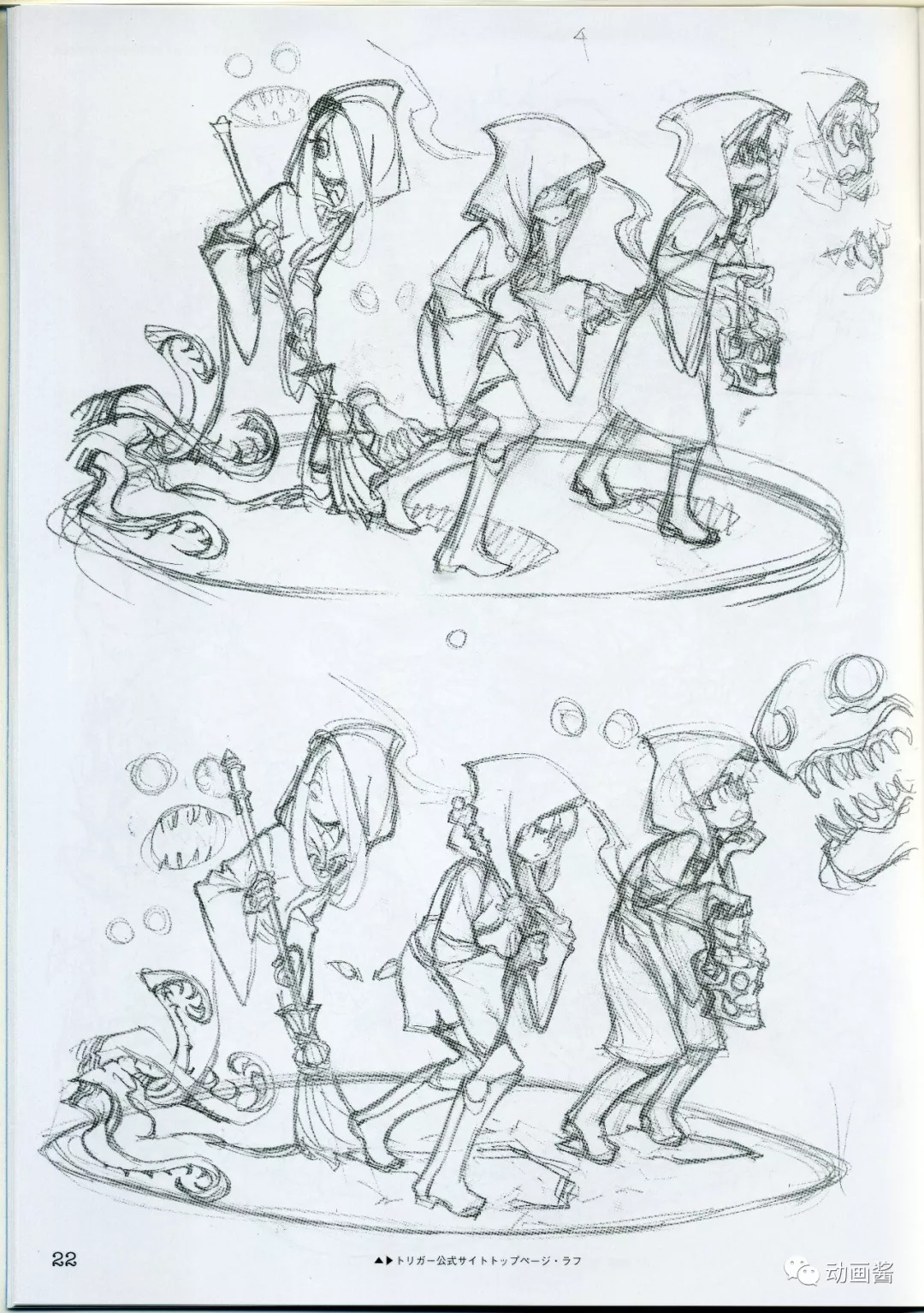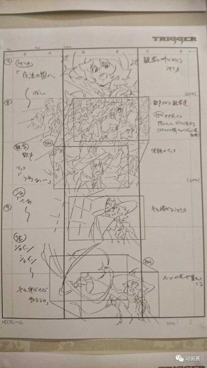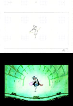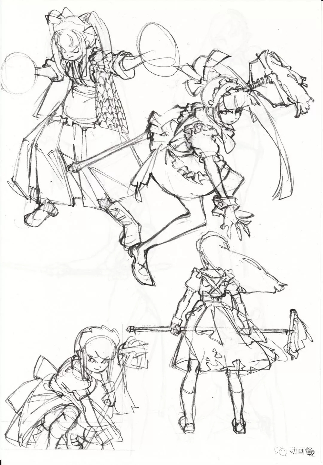 新人原画师们根据监督的分镜和设定图,画出构图(layout)。吉成监督会根据每个人所画内容,进行细致的修改和调整。